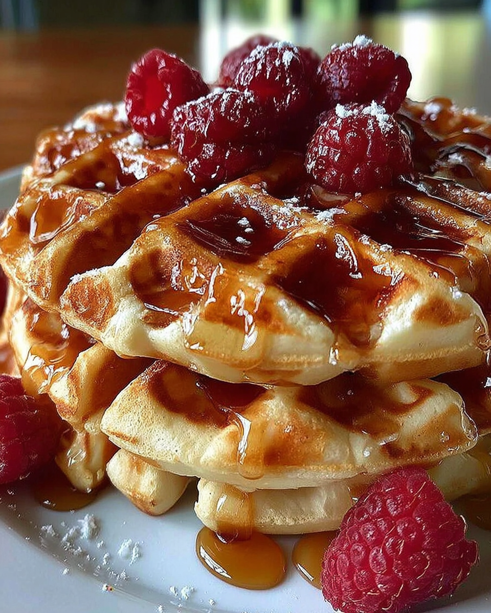 - Pour batter into waffle iron and cook according to manufacturer’s instructions until golden and crisp (about 3–5 minutes per waffle).
