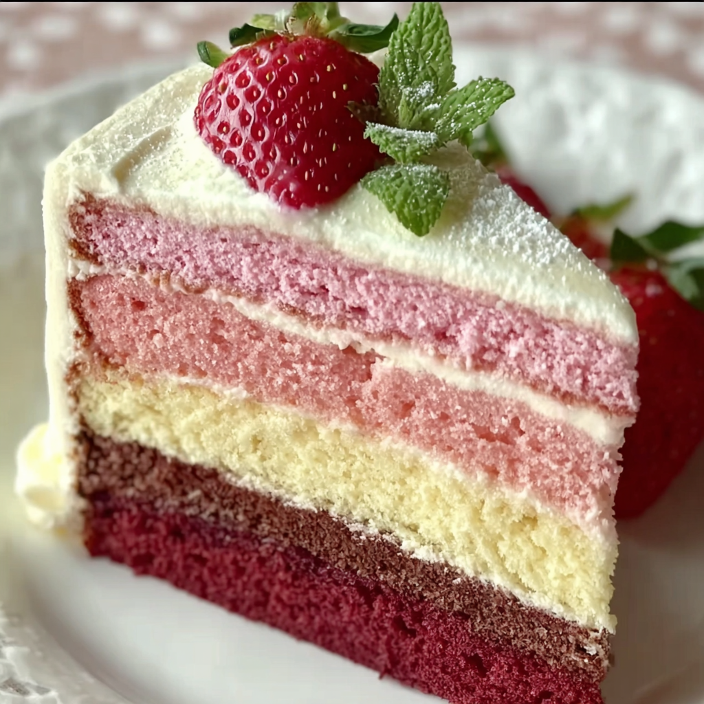 Delight in Every Slice of Neapolitan Layer Cake