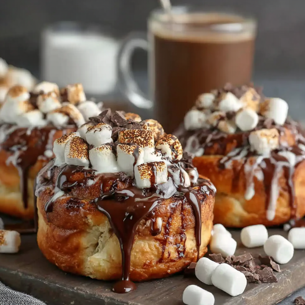 Decadent Hot Chocolate Cinnamon Rolls with Marshmallows
