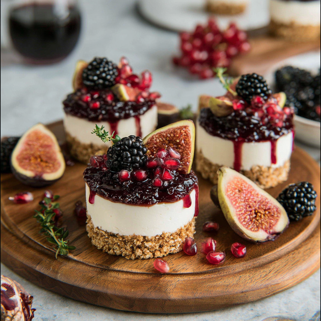 Decadent No-Bake White Chocolate Cheesecakes with Mulled Wine Fruit