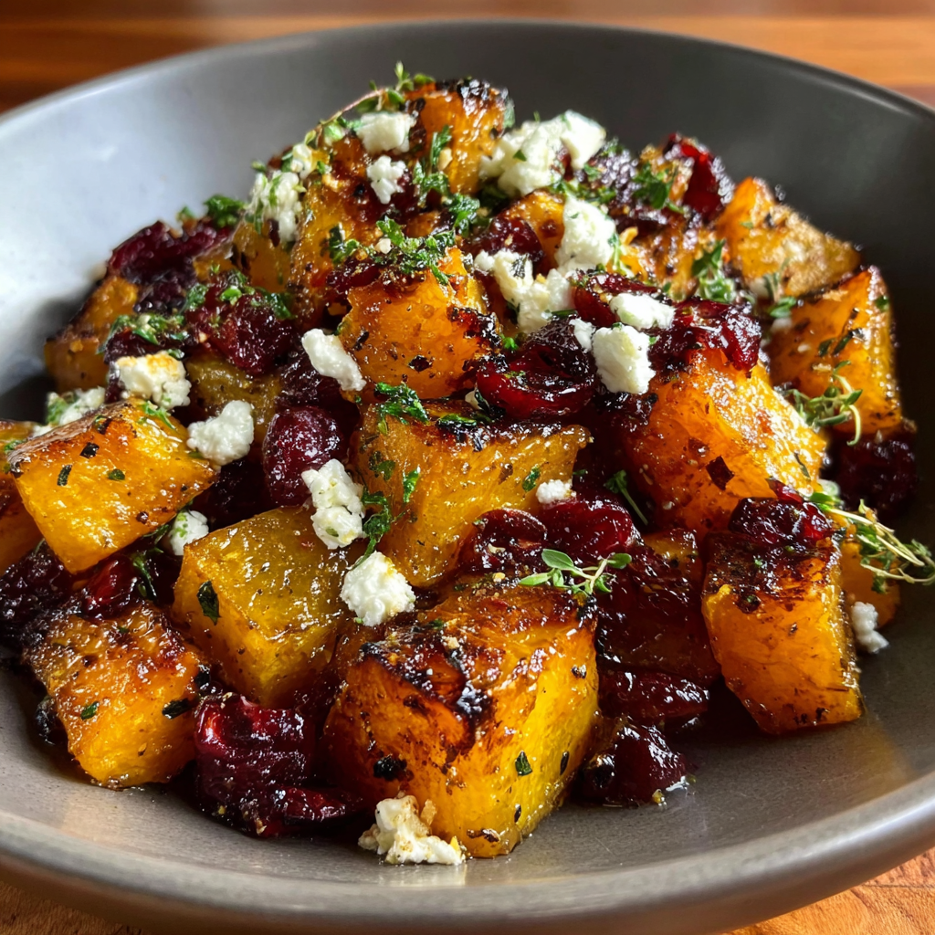 Roasted Butternut Squash with Cranberries and Feta Bliss